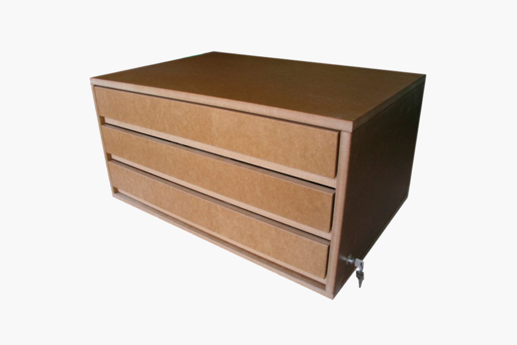 Der Bollmann Schubladenblock wird aus naturlackiertem MDF gefertigt. Er ist mit drei auf Kugellagern gleitenden Vollauszug-Schubladen sowie Zentralverschluss ausgestattet. Der Schubladenblock ist zum Einbau unter die Hobelbänke 1U und 5U geeignet.