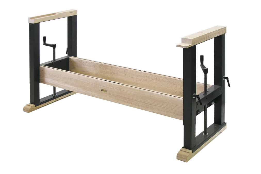 Das Untergestell „Plus“ ist in grauer Lackierung passend zu allen Bollmann 1U, 4U, 5U und 7U Hobelbänken erhältlich. Mit zwei Kurbeln kann die Hobelbank über zwei Spindeln stufenlos von 780 – 1080 mm eingestellt werden. Die Stabilisierung erfolgt mit 4 Klemmhebeln. Eine waagerechte Ausrichtung ist dank eingebauter Wasserwaage-Libelle möglich.
