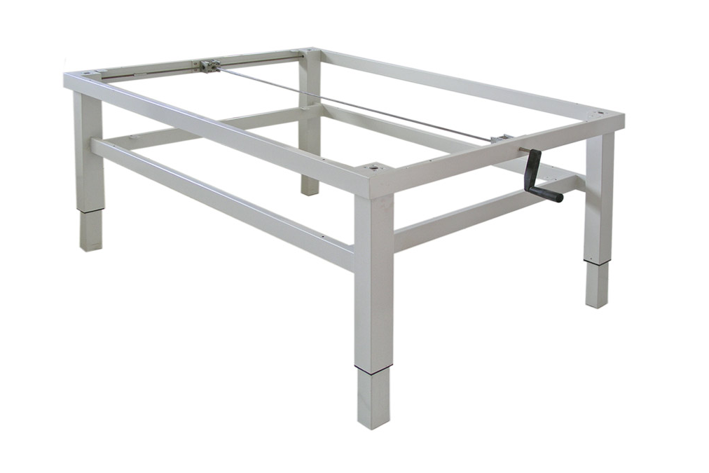 Das Untergestell „Ergo“ DB ist in grauer Lackierung passend zu allen Bollmann 10U Hobelbänken erhältlich. Es wird aus hochwertigem Vierkant-Stahlrohr gefertigt. Die stufenlose, mechanische Höhenverstellung von 750 – 1000 mm ist über je eine Kurbel rechts und links möglich.
